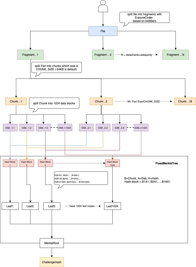 To ensure each storage server commits resources and doesn’t outsource its tasks, our protocol requires that the content for verification is 64 kB, derived from the full file fragment. Here’s how it works: