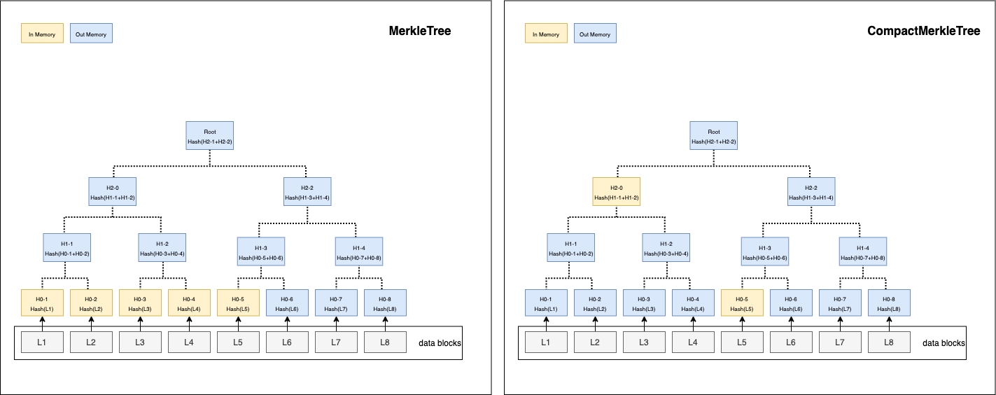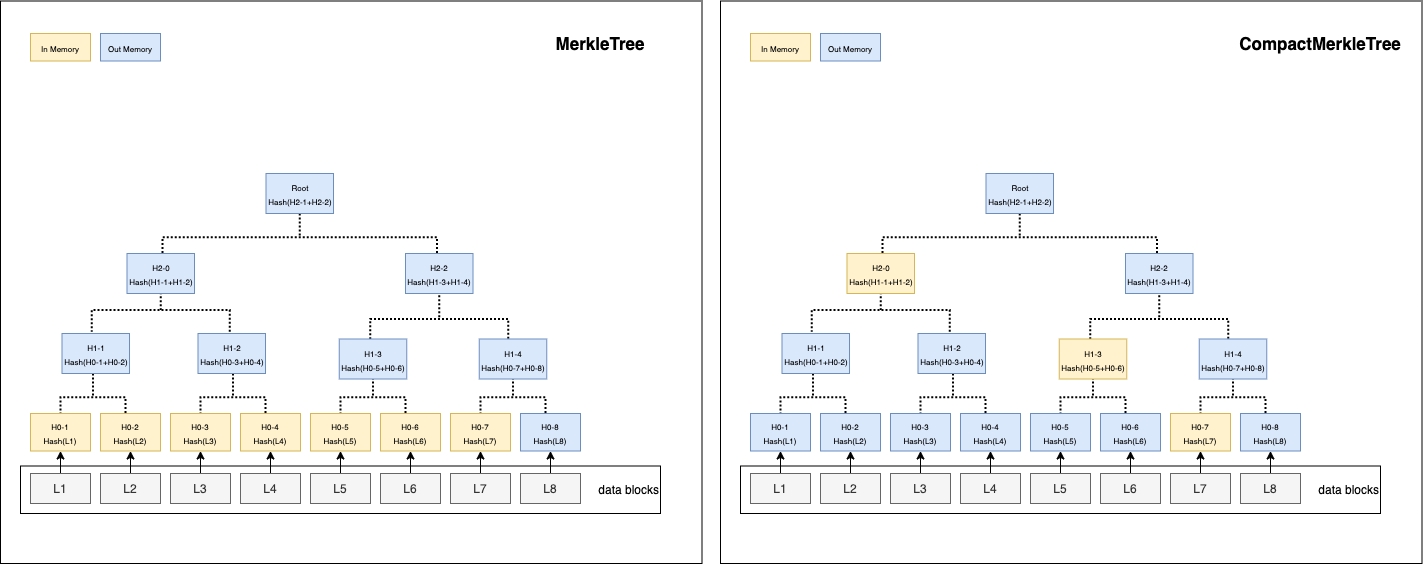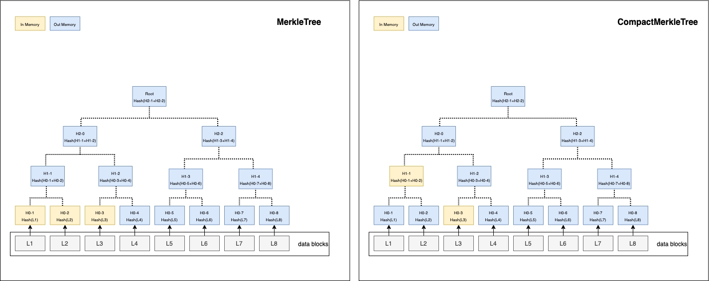 For better performance on memory and persistence, we have a CompactMerkleTree