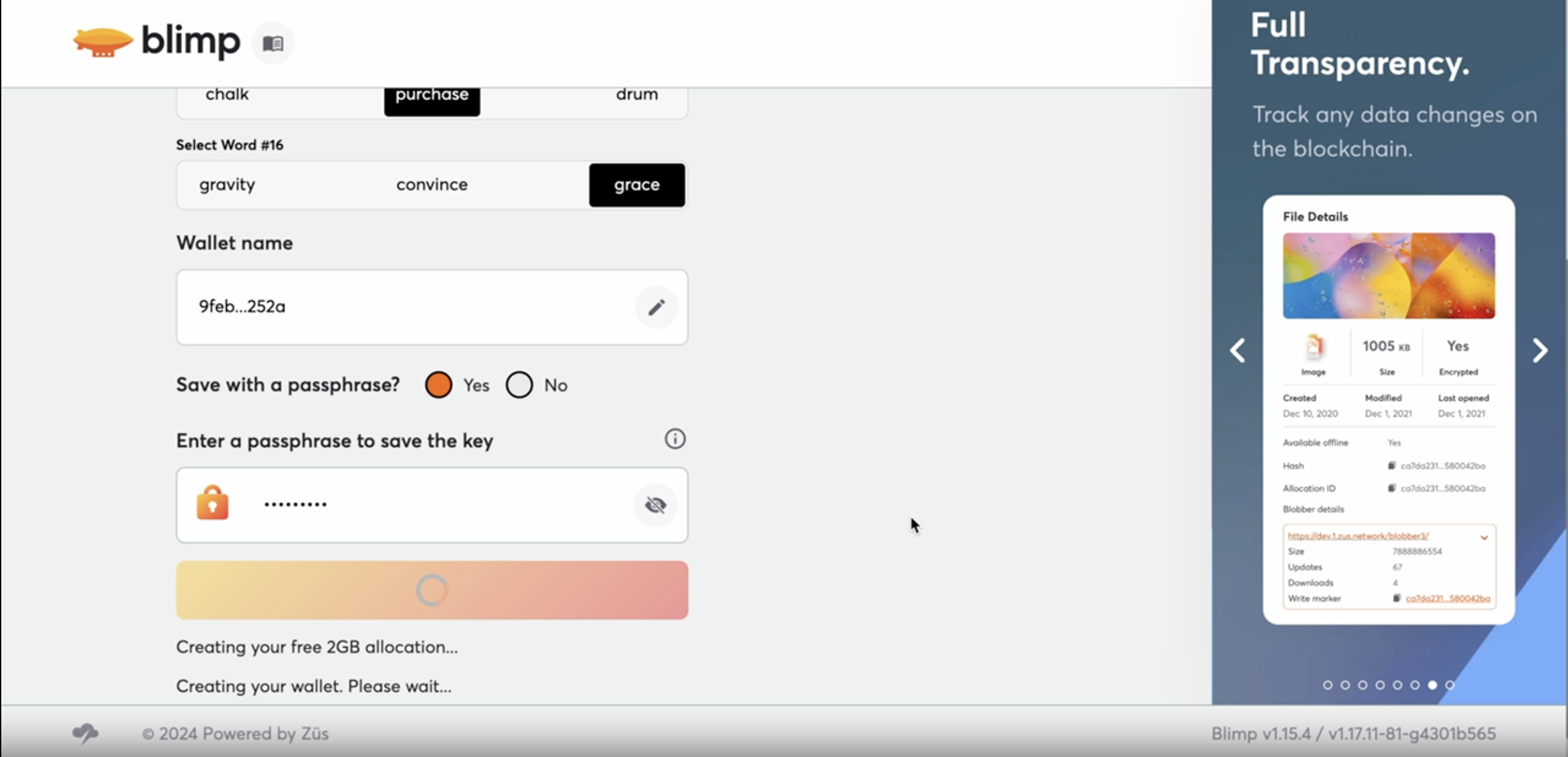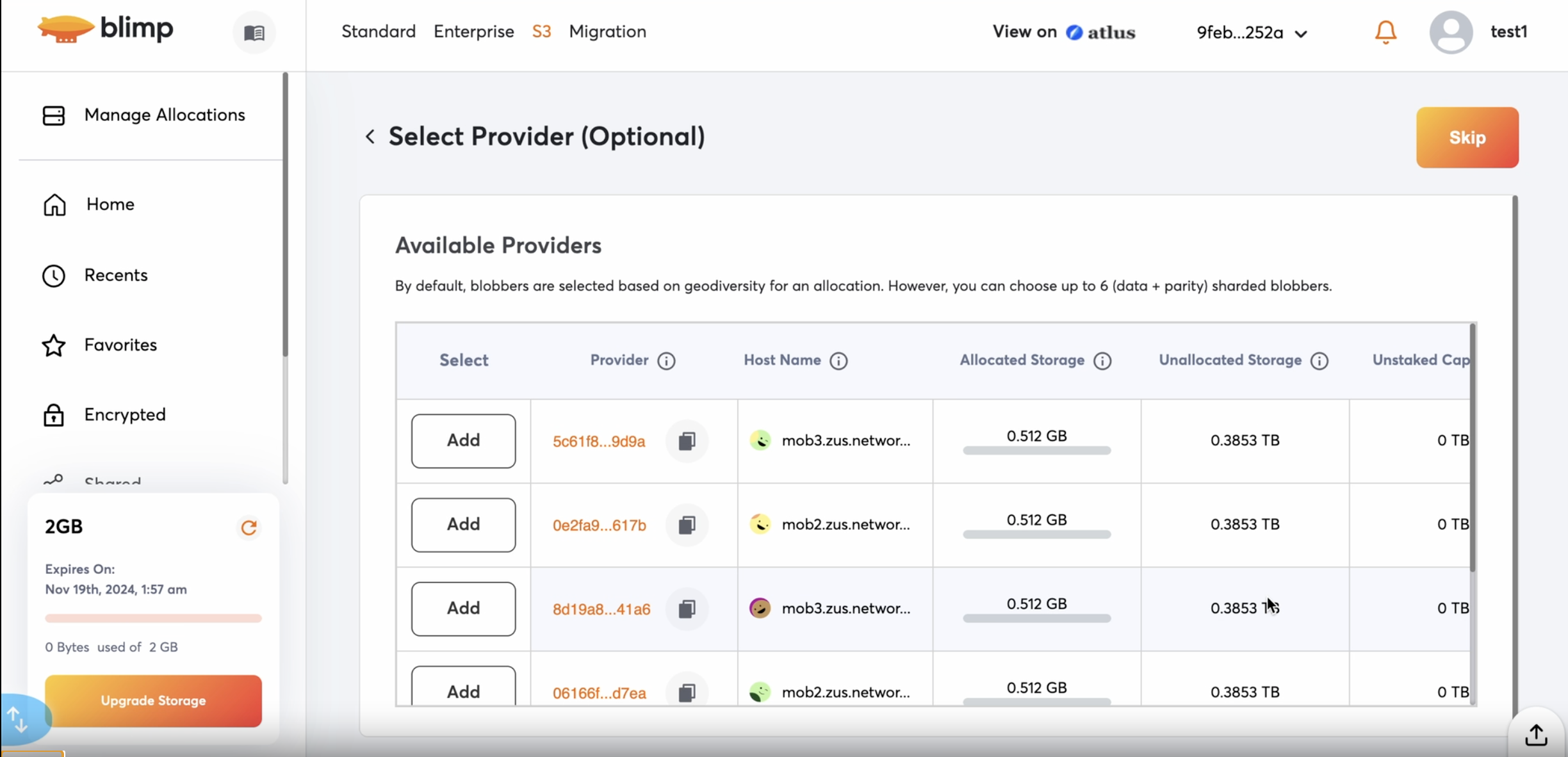 * By default, Blobbers are automatically chosen based on geodiversity. Optionally, manually select up to five sharded providers if needed.