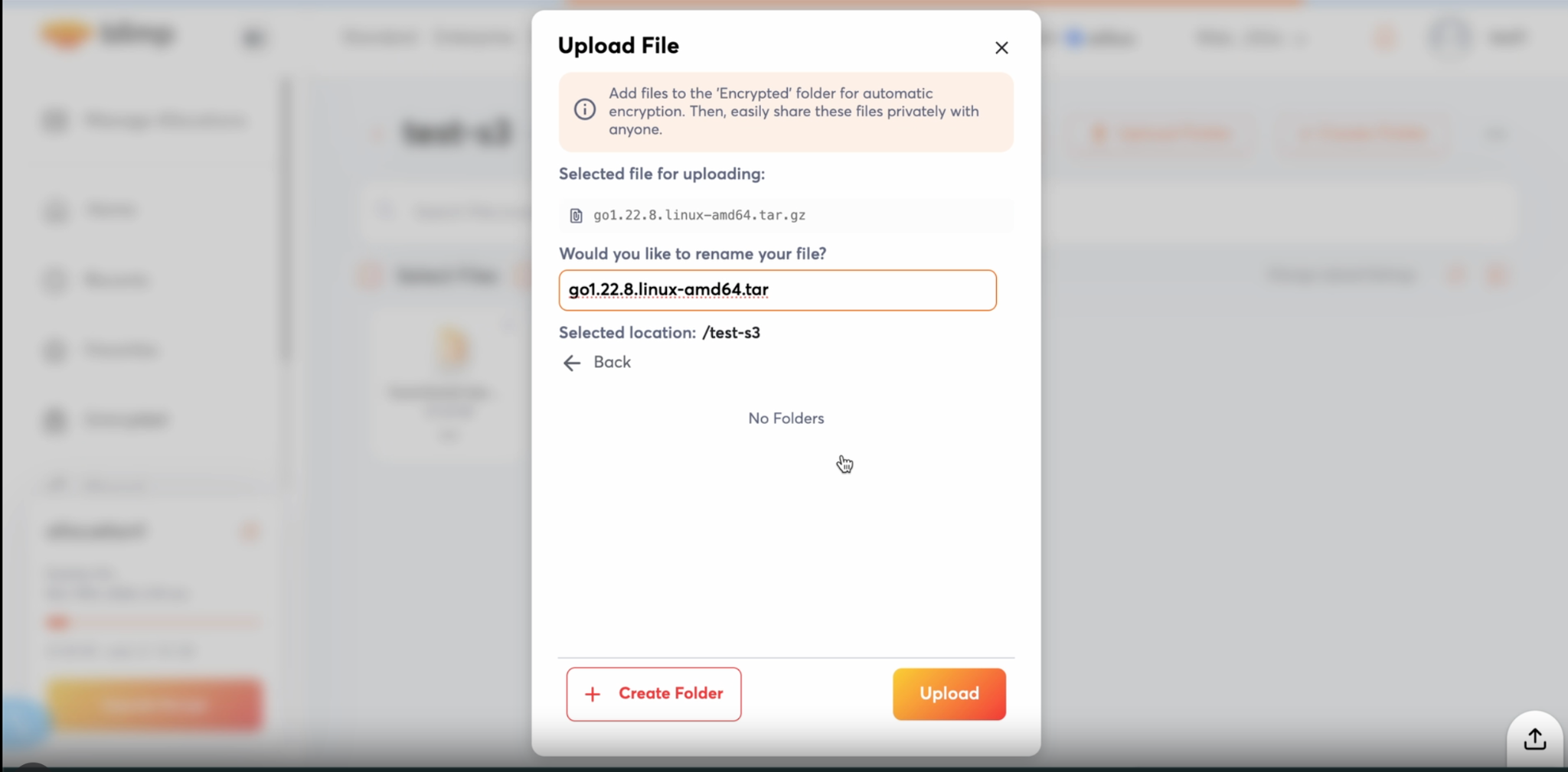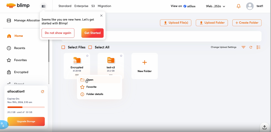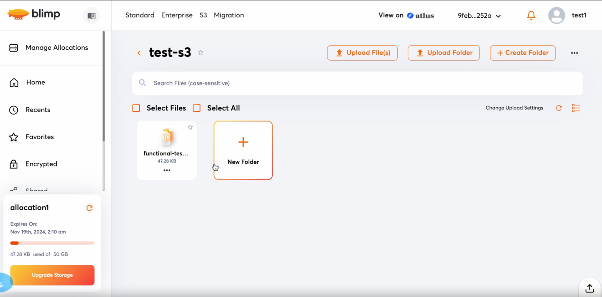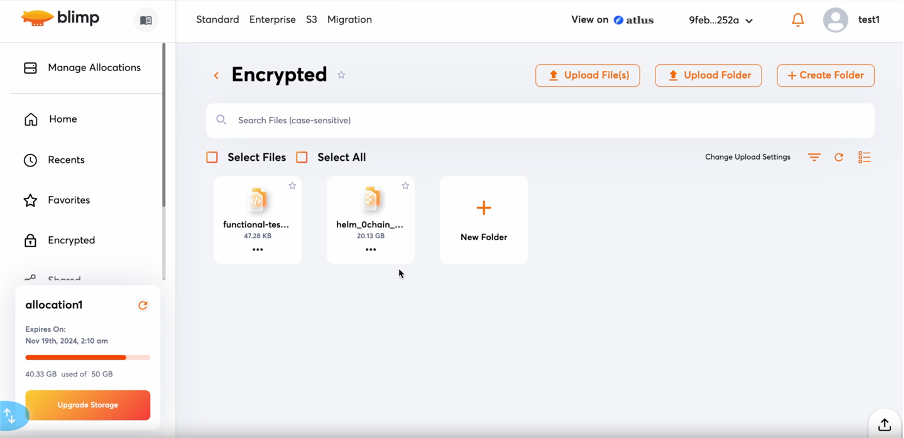 * Go back to the **Blimp UI**. Navigate to the **Encrypted** folder.