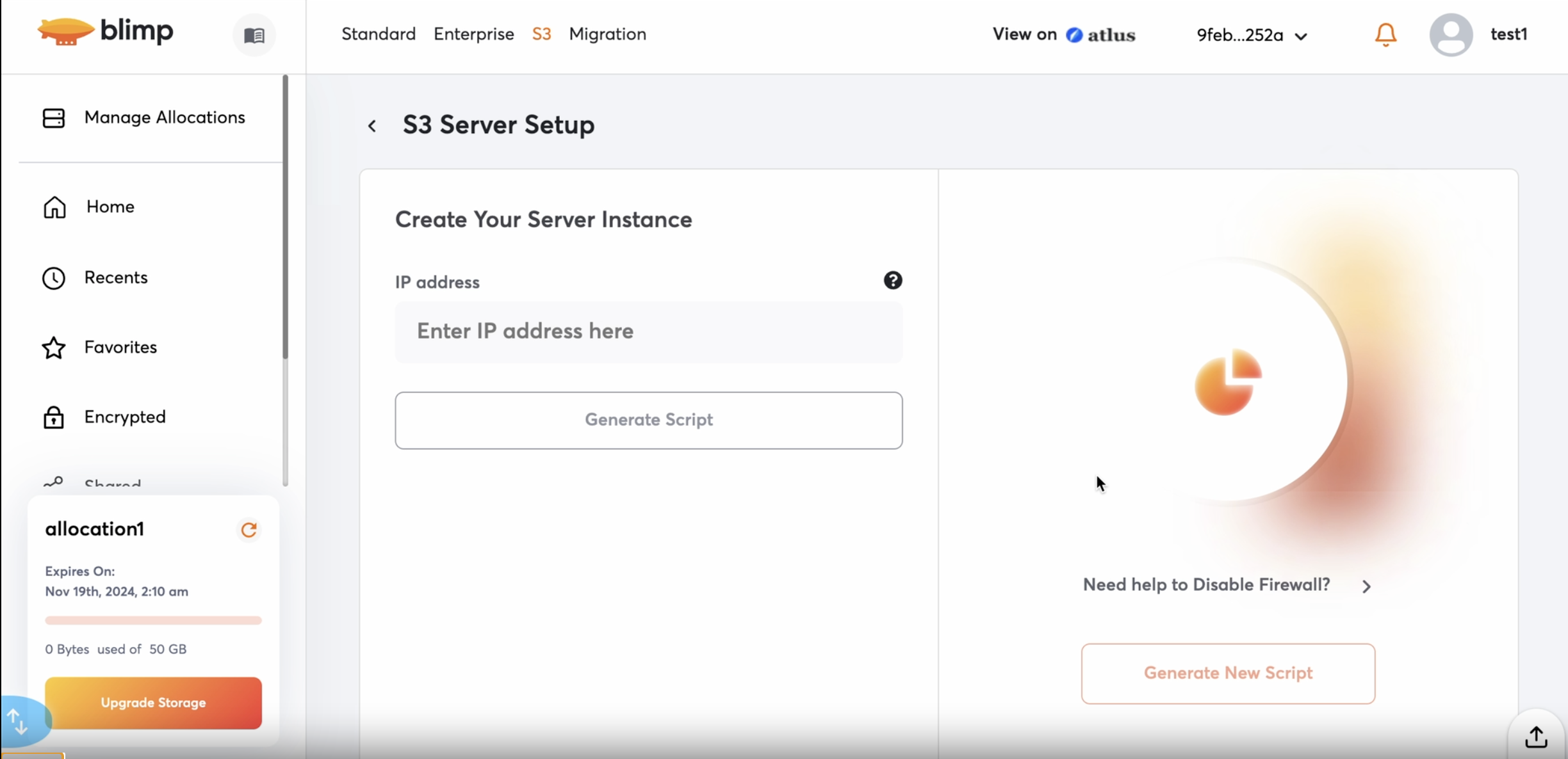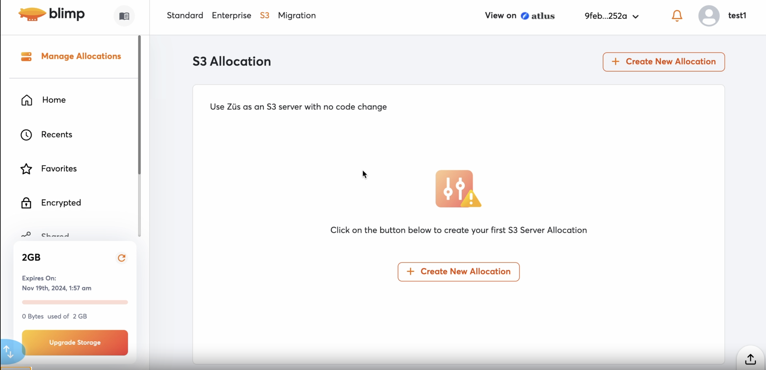 * Open the Blimp UI and navigate to the **S3** tab. Click on the **Create New Allocation** button to start the process of setting up a new allocation.