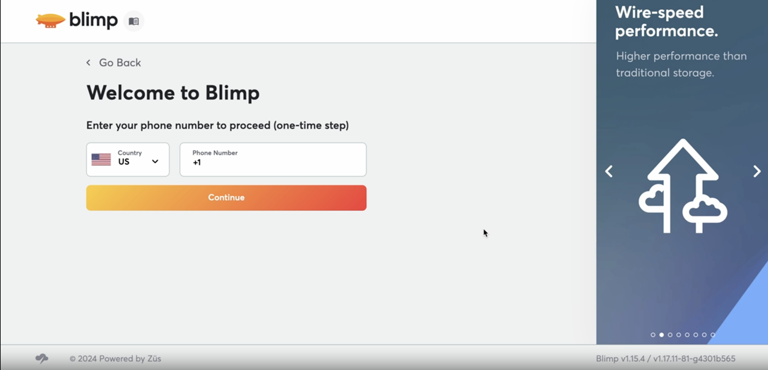 * Provide your mobile number in the Blimp UI. Wait for an OTP to be sent to your phone. Enter the OTP to verify your mobile number.