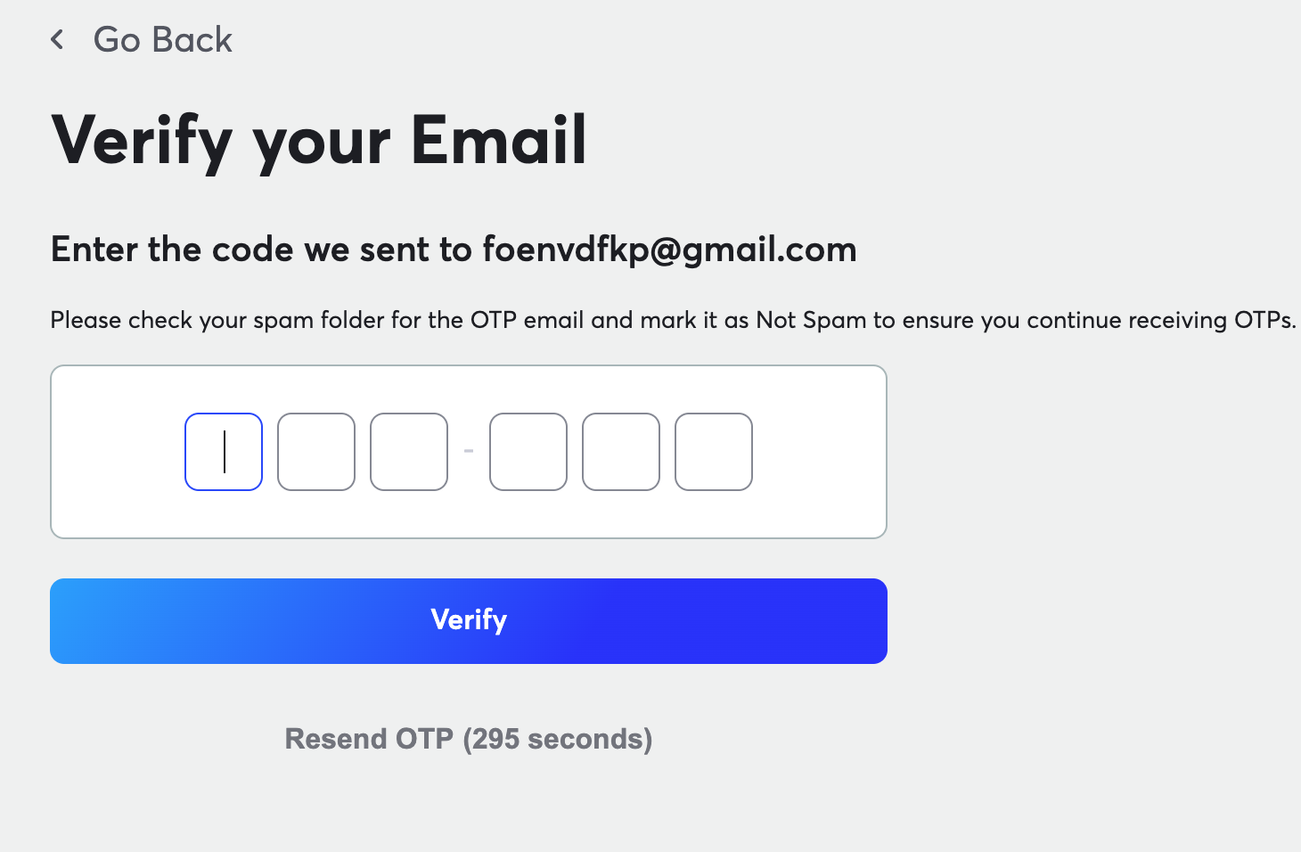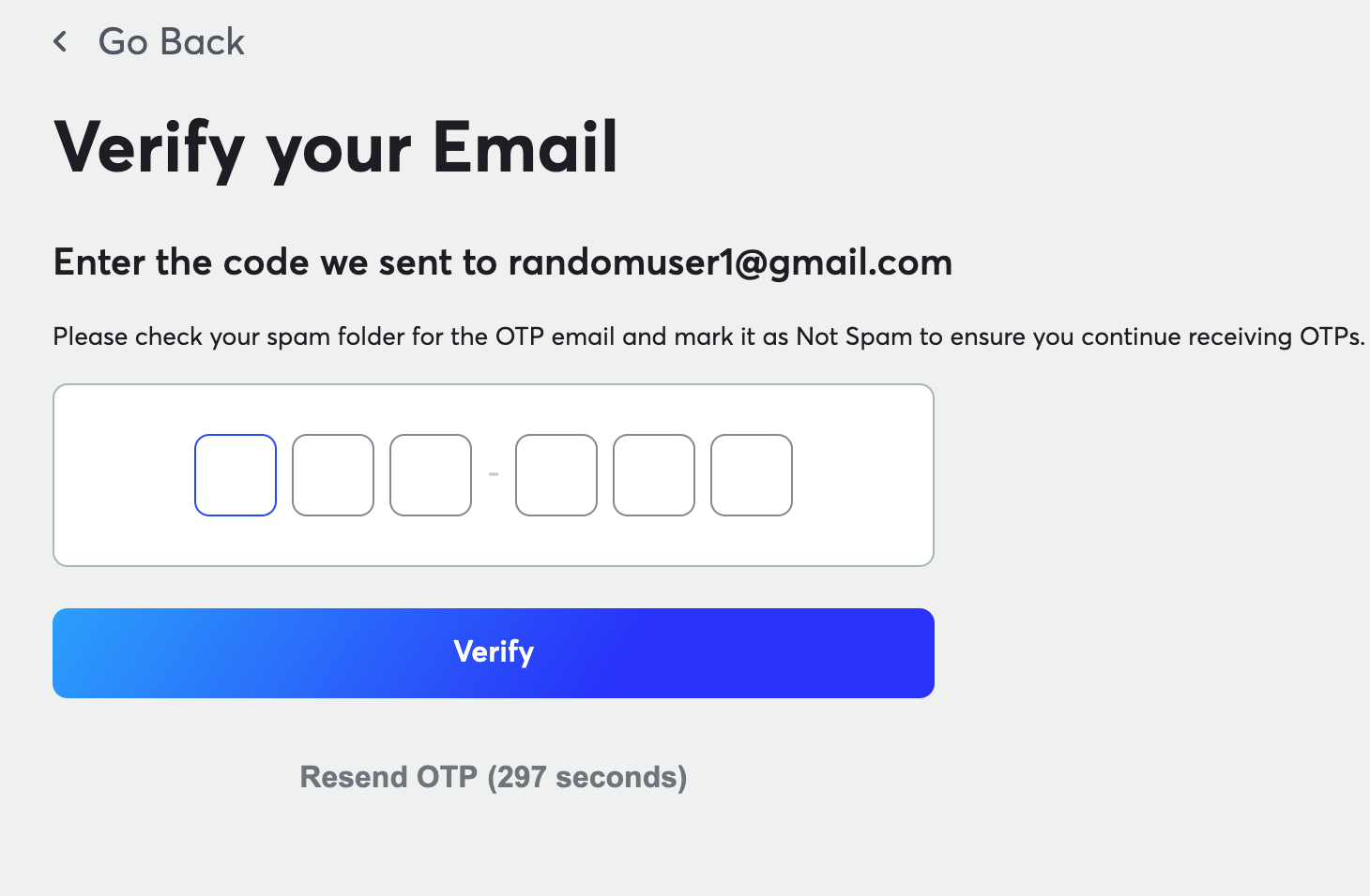 Afterwards, you'll receive an OTP over email you used for registration, which you need to provide in order to complete your registration.