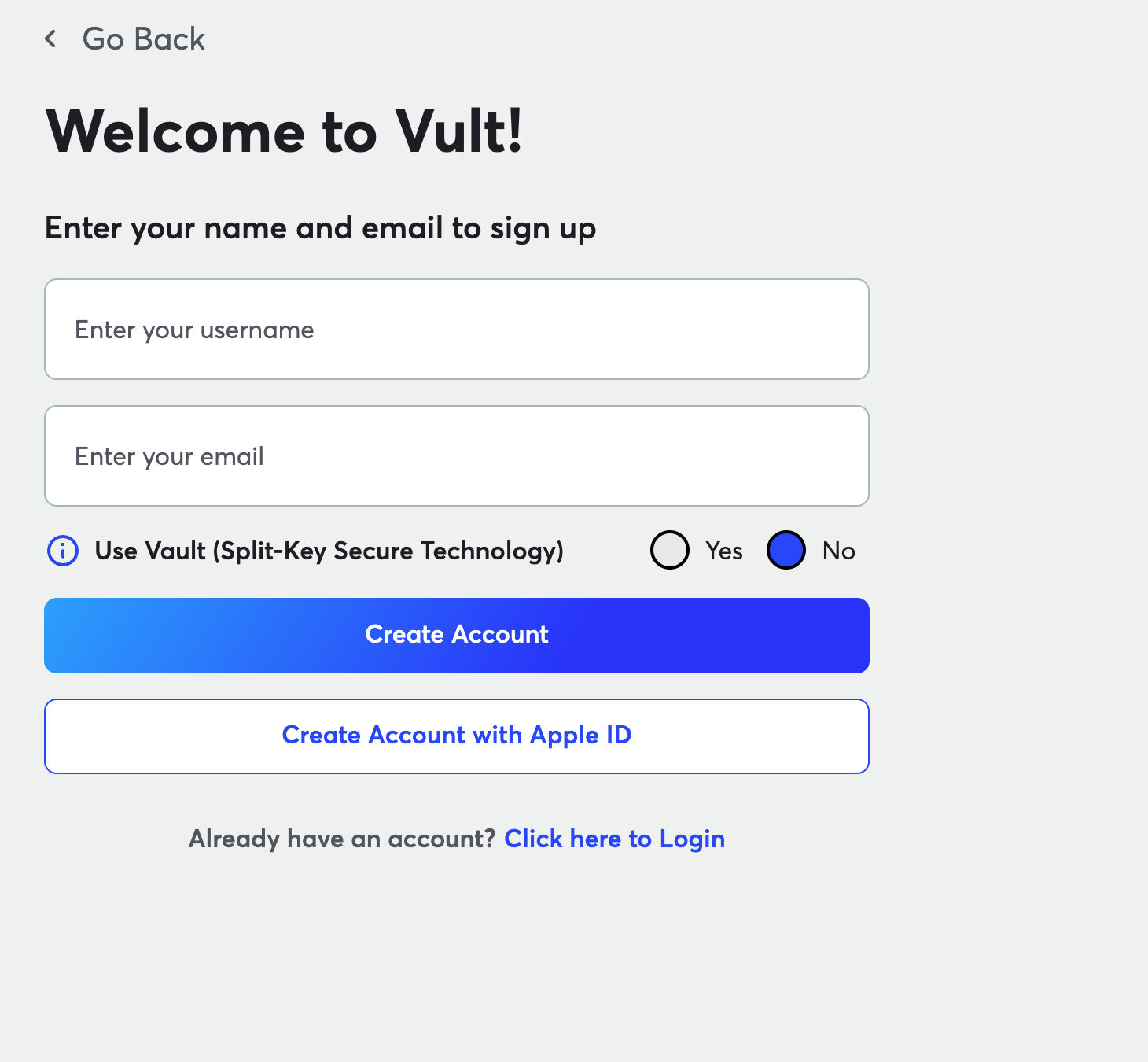 * Two-step passwordless-first authentication. First, you log into your account, then authenticate your wallet.&#x20;