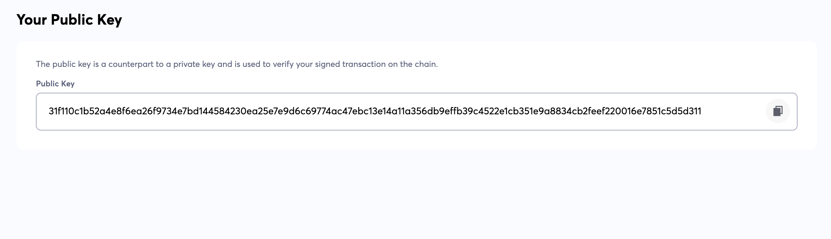 **Your Public Key:** This key is needed to process some operations on CLI.