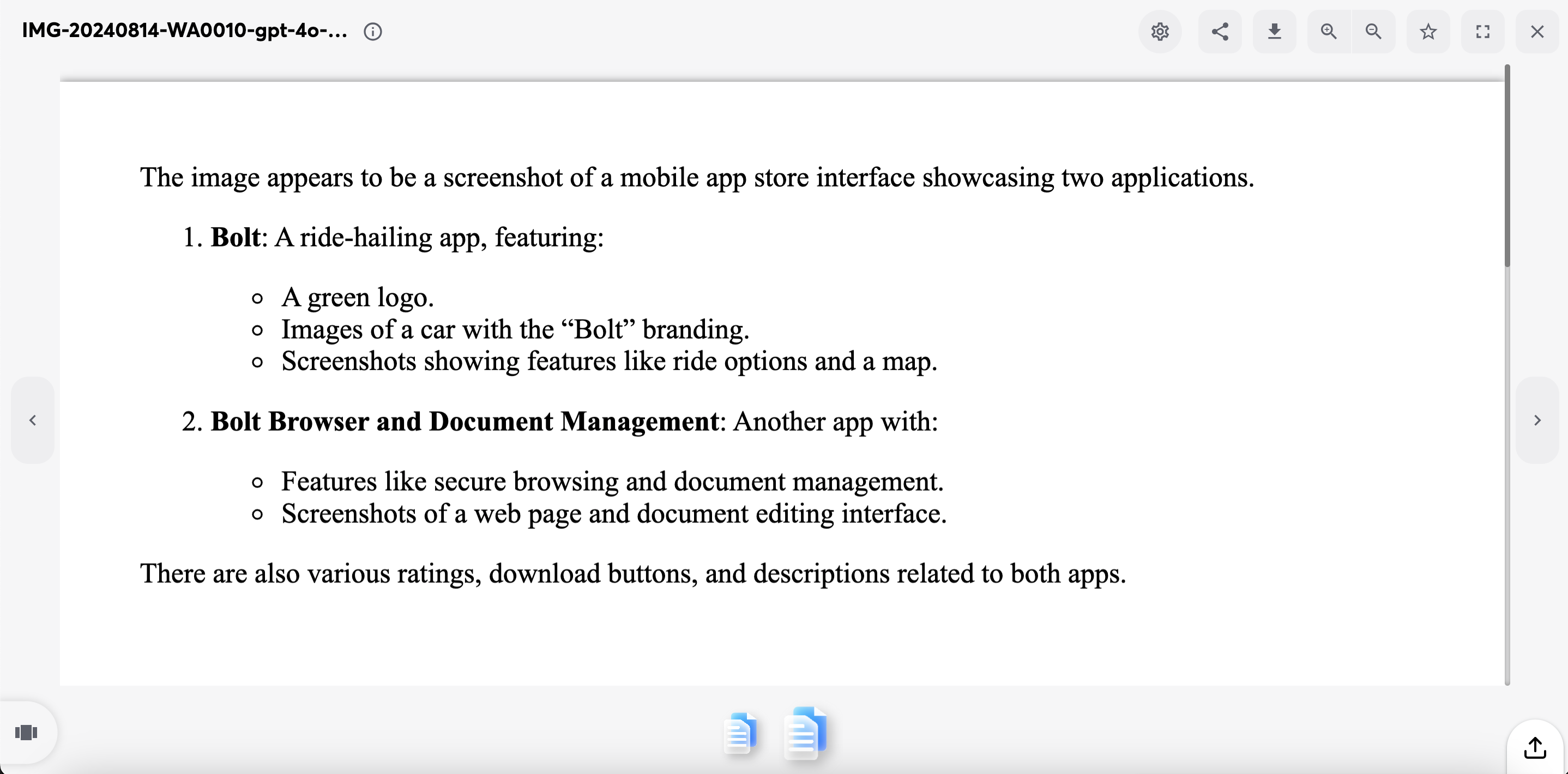 AI-generated responses appear instantly in the chat window. If a file is attached, the AI processes the file and returns insights based on the document type (text extraction, summarization, etc.).