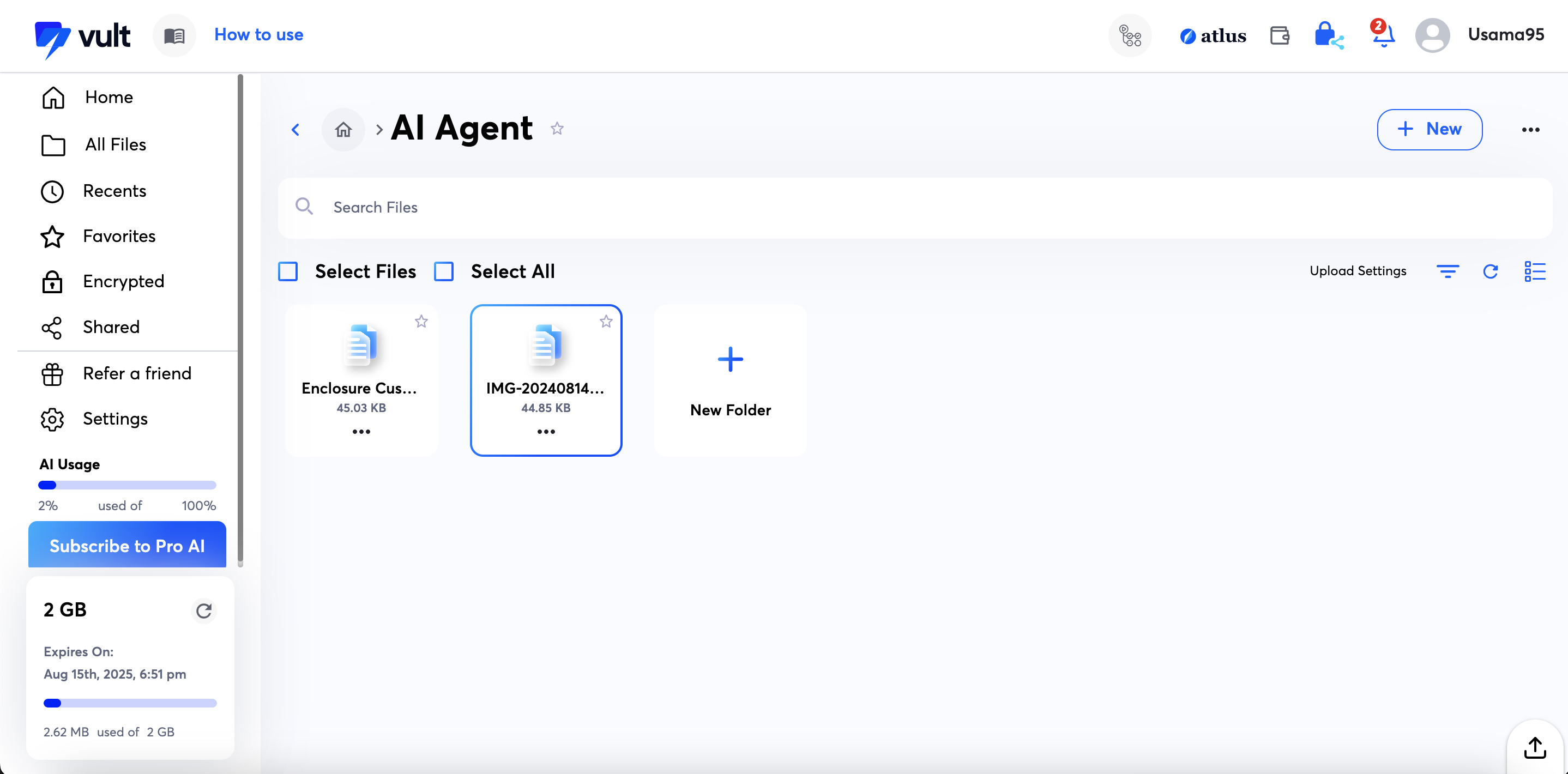Files processed via AI Agent are stored in the AI Agent Folder.