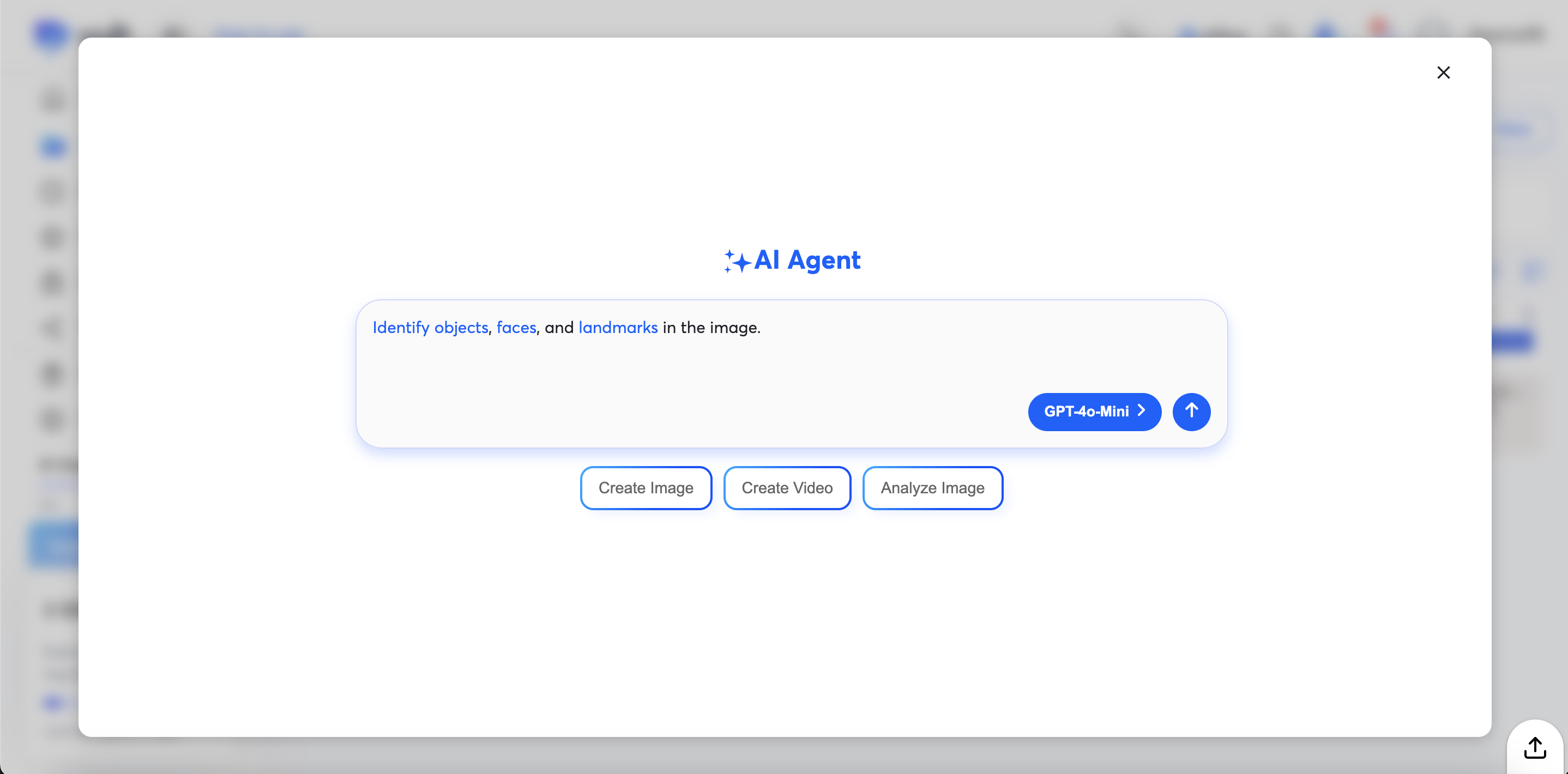 The AI Agent, accessible in the All Files section, allows users to analyze and process files using AI models.